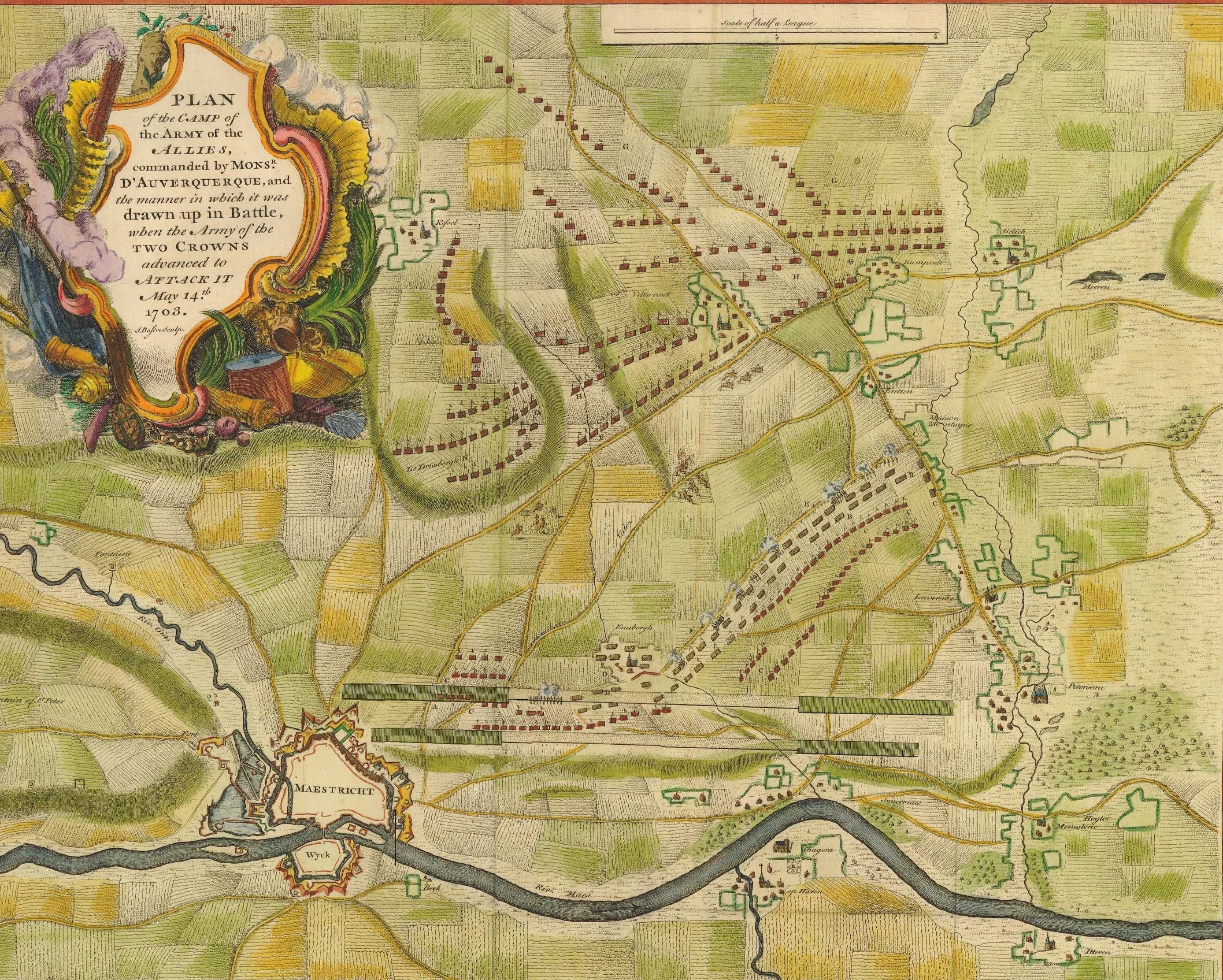 Kamp van de geallieerden Infanterie Cavalerie Cavalerie Infanterie Loopgraven gegraven bij de nadering van het vijandelijke leger Infanterie geplaatst naast het front van het leger Infanterie Cavalerie Cavalerie Cavalerie Cavalerie Infanterie Infanterie geplaatst naast het front van het leger Holle wegen met enkele bruggen waar vooruitgeschoven infanterie van de vijand Plaats van gevecht tussen de twee legers Plaats van gevecht tussen de twee legers Plaats van gevecht tussen de twee legers Plaats van gevecht tussen de twee legers Enkele vijandelijke squadrons waarin de genraals zich bevinden Enkele vijandelijke squadrons waarin de generaals zich bevinden Enkele vijandelijke squadrons waarin de generaals zich bevinden Beweeg met de muis boven de letters A tm H op de kaart om te zien wat ze betekenen. A tm E: Geallieerden (Pruisen, Republiek en Engeland. F tm H: Fransen en Spanjaarden