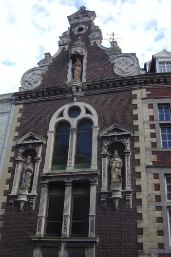 Dit gebouw dateert uit 1666. Daarvoor stond er ook al een huis, maar dat werd grotendeels door de stadsbrand van 1665 verwoest. De eerste bewoner was Petrus van Boshuysen, schout van Echt. In 1876 werd dit een zusterklooster en kindertehuis. Het gebouw kenmerkt zich door een Maaslandse Renaissancestijl (o.a. mergelstenen om de vensters, grote mergelstenen lijnen). Bovenin de gevel bevindt zich een Mariabeeld en eronder beelden van de H. Augustinus en H. Dominicus. Voor meer informatie over dit pand zie een document op de site van de historie van Roermond van de hand van Willem Cartigny Hierboven familieportretten en de wapens van de familie Scherpenzeel (schoonvader)en de familie Heereman van Zuijdtwijck.