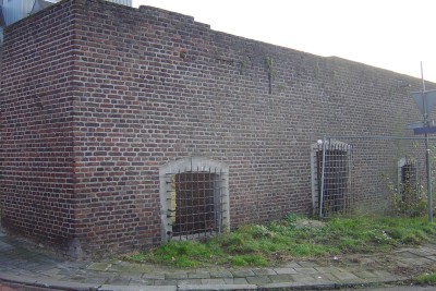 Restant stadsmuur Venlo met origineel ijzeren traliewerk. Foto dec. 2006 Pieter Simons Op 8 oktober 1797 vertelt Petit hoe een landbouwer, F. Hermans, bij de Gelderse poort gesnapt werd met Engelse koopwaren. Hermans wist na een wilde achtervolging door enkele straten toch nog te ontkomen met zijn smokkelwaar. Bij de huiszoeking die er op volgde werd de hele partij gevonden en in beslag genomen. Vooral de huizenrij aan de Maasstraat, de zogenaamde Luif, waar smokkelen een koud kunstje was, werd scherp in de gaten gehouden. Alle in de stadsmuur uitgebroken vensteropeningen waren afgesloten met degelijk hekwerk. (Dit soort tralies is nog te zien bij het restant van de vroegere stadsmuur aan de Maaskade).