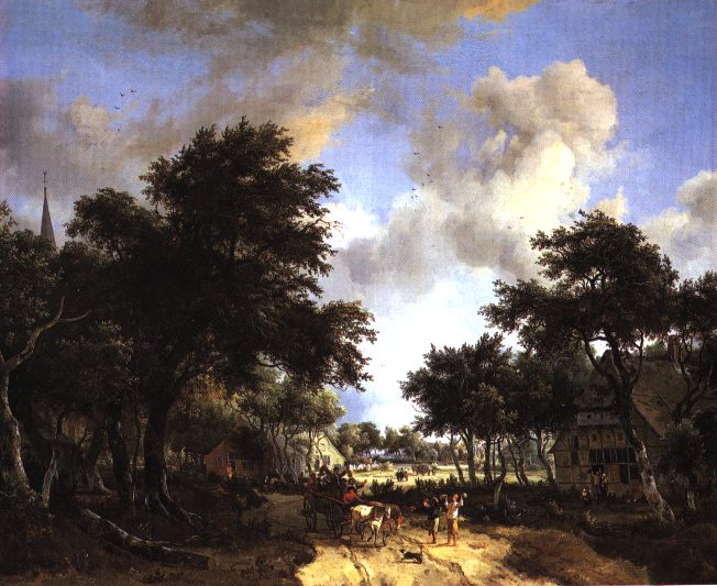 (afbeelding in tentoonstellingscatalogus Mauritshuis, schilderij particulier bezit)Bovenstaand schilderij, gemaakt in noordelijker streken, geeft wellicht ook een zeker beeld van het dorpslandschap in die tijd in Limburg.
