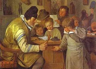 "De Schoolmeester". Schilderij van Bernardus van Schendel (1649-1709)