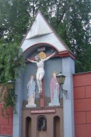 Oud wegkruis aan de Minderbroederstraat in Roermond met 17e eeuws houten Christus. Dit zal een van de beelden geweest zijn die indertijd moest verdwijnen. Gelukkig is er nog veel van gered. Foto: Pieter Simons september 2006