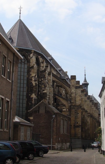 Op de foto de eerste kerk van de Minderbroeders op de Pieterstraat, nu in gebruik bij het Regionaal Historisch cetrum.