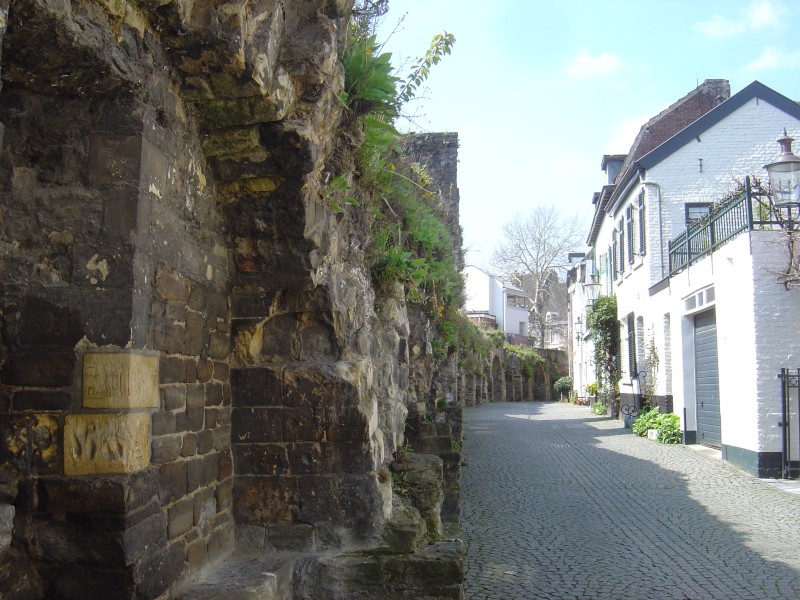 Maastricht kent twee fasen van omwalling. Van allebei zijn nog diverse delen bewaard gebleven. Hier komen we bij restanten van de oudste omwalling. Aan het Lang Grachtje kun je een goede indruk krijgen van de eerste stenen ommuring van de stad uit de 13e eeuw. De muur van bruine kolenzandsteen is enkele meters hoog en aan de stadszijde versterkt met bogen die een borstwering dragen. Er zijn ook torens opgenomen in de muur en op verschillende plaatsen zijn schietgaten te zien.