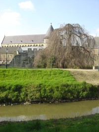 Het gebouw met de rood/witte luiken op de linker foto beneden is het Faliezusterklooster. Het is gebouwd in Maaslandse Renaissancestijl en dateert uit 1647. Nu is het omgebouwd en zijn er particuliere woningen in gevestigd. Op de linker foto zien we in de verte ook nog de zijgevel van de oude Minderbroederskerk, tegenwoordig in gebruik als Regionaal Historisch Centrum. (tot voor kort RAL genoemd, Rijksarchief Limburg)