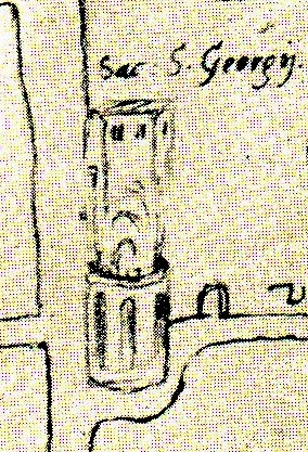 - De Georgiuskerk (St. Joris) met zijn merkwaardige toren stond op de hoek van Spilstraat - Grote staat. De Groote Staat heette aanvankelijk vanwege deze kerk st. Jorisstraat. Deze kerk werd in 1568 door beeldenstormers verwoest en geplunderd. Het terrein werd toen geschonken aan de Dominicanen en werd onderdeel van het klooster, een klein deel werd gebruikt ter verbreding van de Grote staat ter plaatse. Op deze plaats kan ook vermeld worden het nabijgelegen grote kruis aan de rand van het Vrijthof. Dit is het zogenaamde "perron van Luik." Een verhoging met kruis dat symbool staat voor de gedeelde machtsstructuur van Brabant en Luik (later Nederland en Luik). Op dit moment is een alternatief "perron van Luik" weer op die plaats teruggezet. Het schijnt dat het gebruikelijk was om bij het perron van Luik vroeger schuldenaren te kijk te zetten in een schandpaal. Het kruis zelf kan heel goed van nog ouder oorsprong zijn. Het vrijthof stond op een plaats waar belangrijke handelswegen elkaar kruisten. Deze kruispunten werden meestal gemarkeerd met een kruis.
