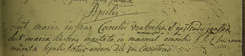 Heel opmerkelijk is het overlijden van Schepen Cornelis van Keeken in 1795: op dezelfde dag overlijdt namelijk ook zijn vrouw. In de overlijdensactes staat: